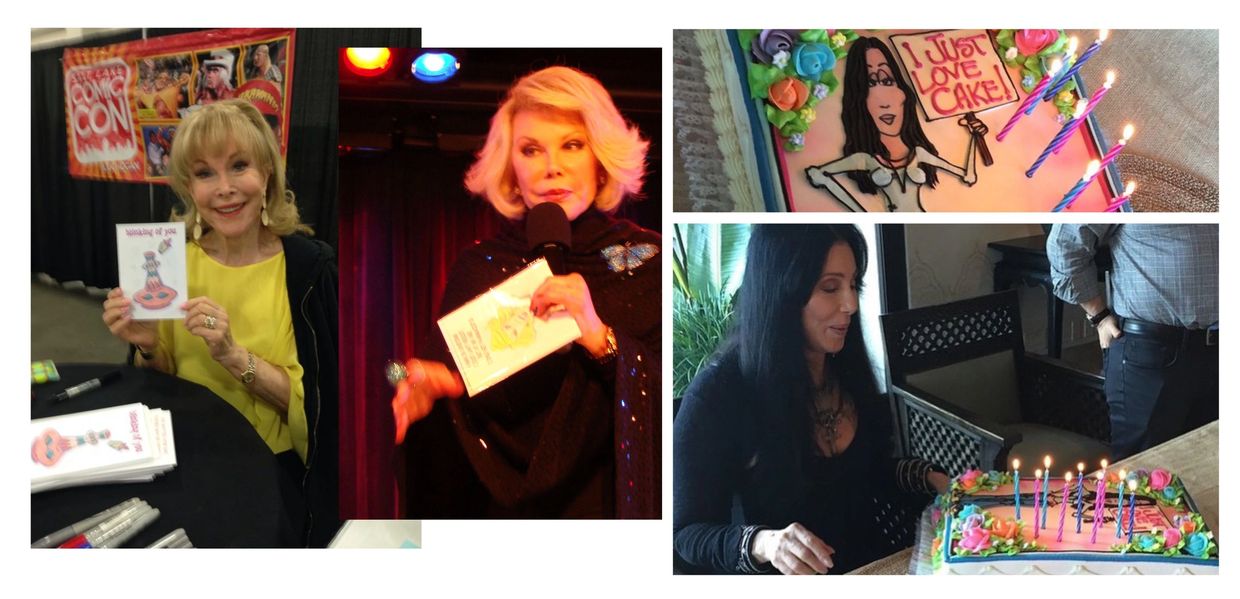 Hello and thank you for taking the time to visit my site. I am an internationally self published cartoonist, painter, writer and teaching artist(and sometimes singer) from Annapolis Maryland. I work in many mediums of art but my passion is in illustration and poetry, self publishing over a dozen books of my enterTOONing illustrations available on Amazon, Barnes & Noble etc., in addition to greeting cards and other various merchandise available in various outlets. I spend countless hours lost in my "toon" world at home and when I'm not tooning I'm teaching painting, drawing and/or crafting classes for the local community college, area senior centers and more. My hope is to use my creative energy to inspire, enlighten and entertain. I began drawing at a very young age, I was an only child so drawing became my best friend. I was inspired by Hanna-Barbera cartoons, but also learned from people and places around me, I can remember copying technique as young as 7 years old from a girl sitting next to me in grade school, I loved how she drew hair. I later became inspired by fashion illustration, studying drawings by such designers as Bob Mackie. I would sit and draw Cher in all kinds of wild clothes(I'm still doing that today). Drawing has always been a part of my life but not until I was much older did I begin to share it publicly and commercially. I began by designing greeting card collections, from humor to inspirational and from breast cancer awareness to LGBT inclusion and MORE! I progressed into celebrity caricatures and found it incredibly fun and people seemed to enjoy it. Cher, Joan Rivers, Barbra, Dolly and hundreds more. I saw so many other artists do caricatures as well so I wanted to be different so I added poetry and commentary bubbles to the drawings.....I'm not the greatest artist and not the greatest writer but I believe the combination creates something very special...toon-tributes. I've been blessed to have many celebrities see my work and their kindness and gratitude is always overwhelming. Joan Rivers LOVED the greeting cards I designed for her and took them onstage during a performance in NYC, Barbara Eden posed graciously with a Jeannie-toon and my shining moment was when a Cher-toon of mine made it's way to the icon's birthday cake! I am grateful every day for my talent and the opportunities to share it and inspirit others. We all have a gift, the objective is to discover your gift and utilize it to better yourself and light up the world <3